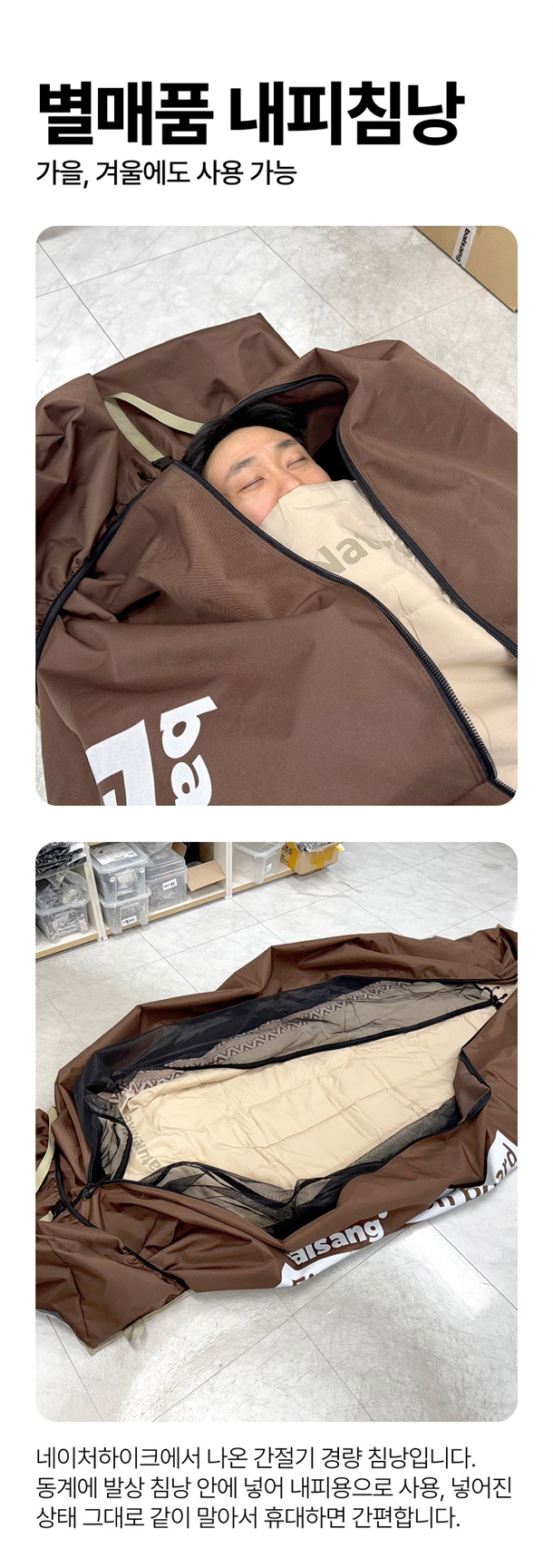 텐트+침낭+매트리스+베개 4가지가 하나로 합체!!