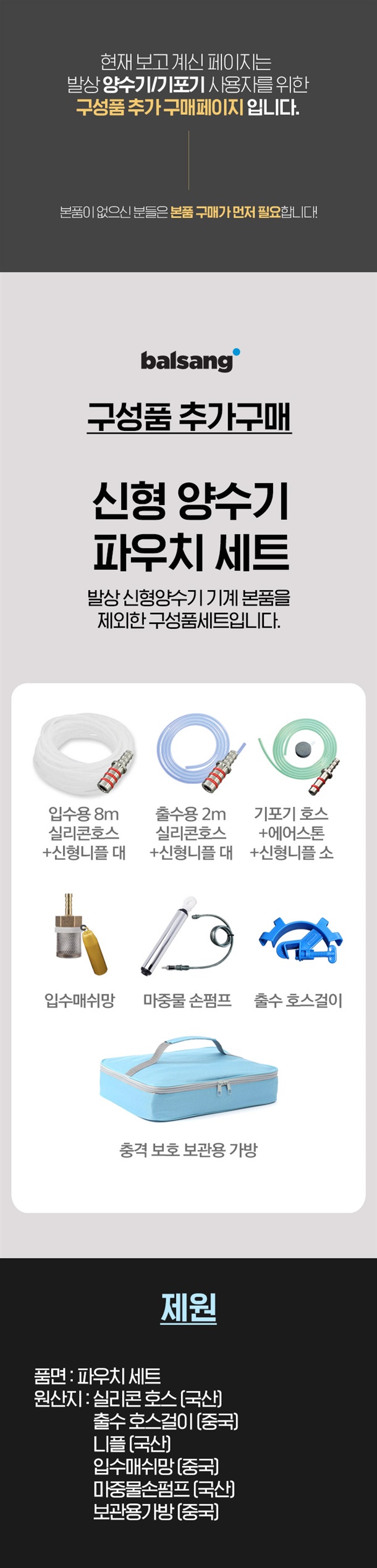 | 1. 품명 및 모델명 | 파우치 세트 (양수기 본품 제외) |