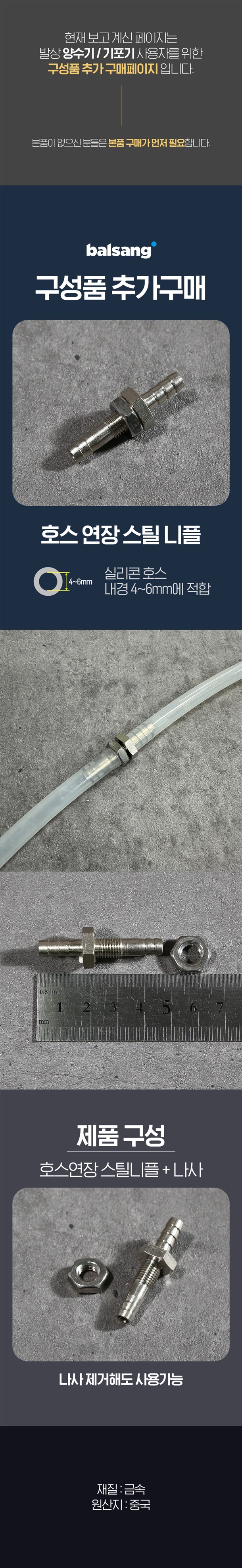 | 1. 품명 및 모델명 | [단품] 발상양수기 전용 호스 연장 스틸 니플 |